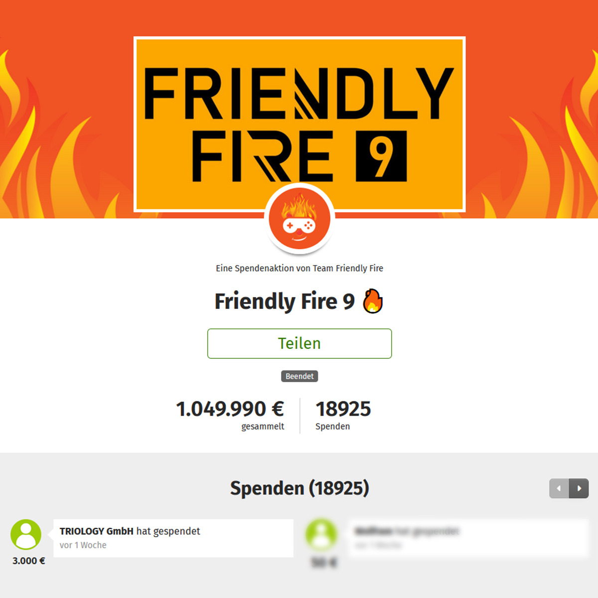 Friendly Fire ist eine jährliche Spendenaktion, welche online auf dem Twitch Kanal von Gronkh (Erik Range, gebürtiger Braunschweiger) am 02.12.23 um 15 Uhr übertragen wird. Unter dem diesjährigen Motto „Rennsport“ zocken verschiedene bekannte Gesichter der Gaming Szene zusammen, um Geld zu sammeln. Dieses setzt sich aus Direktspenden, Auktionen, Merchandiseverkauf und Sponsorengeldern zusammen. Im letzten Jahr wurden so insgesamt knapp 1,8 Millionen Euro gesammelt. In diesem Jahr gehen die Spenden an folgende wohltätige Einrichtungen: